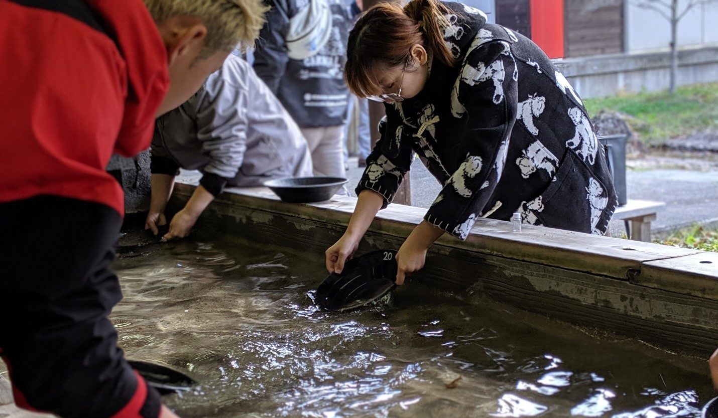 I was able to try gold panning in the river myself during a recent trip to Wakuya, through a river gold-panning tour offered by the local museum Tenpyo Romankan. For now these tours are offered only once in a while on a special-event basis, but the town is planning to offer them more regularly soon. Even if you can’t make it to one of these special-event tour dates, you can still try gold panning in the museum’s on-site workshop, which lets visitors pan for gold in troughs filled with sediment collected from the river.